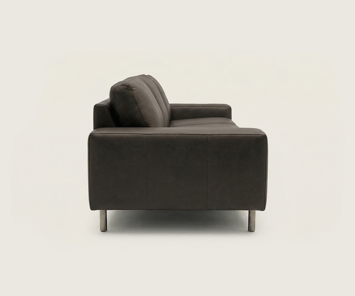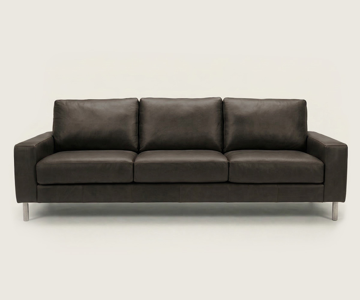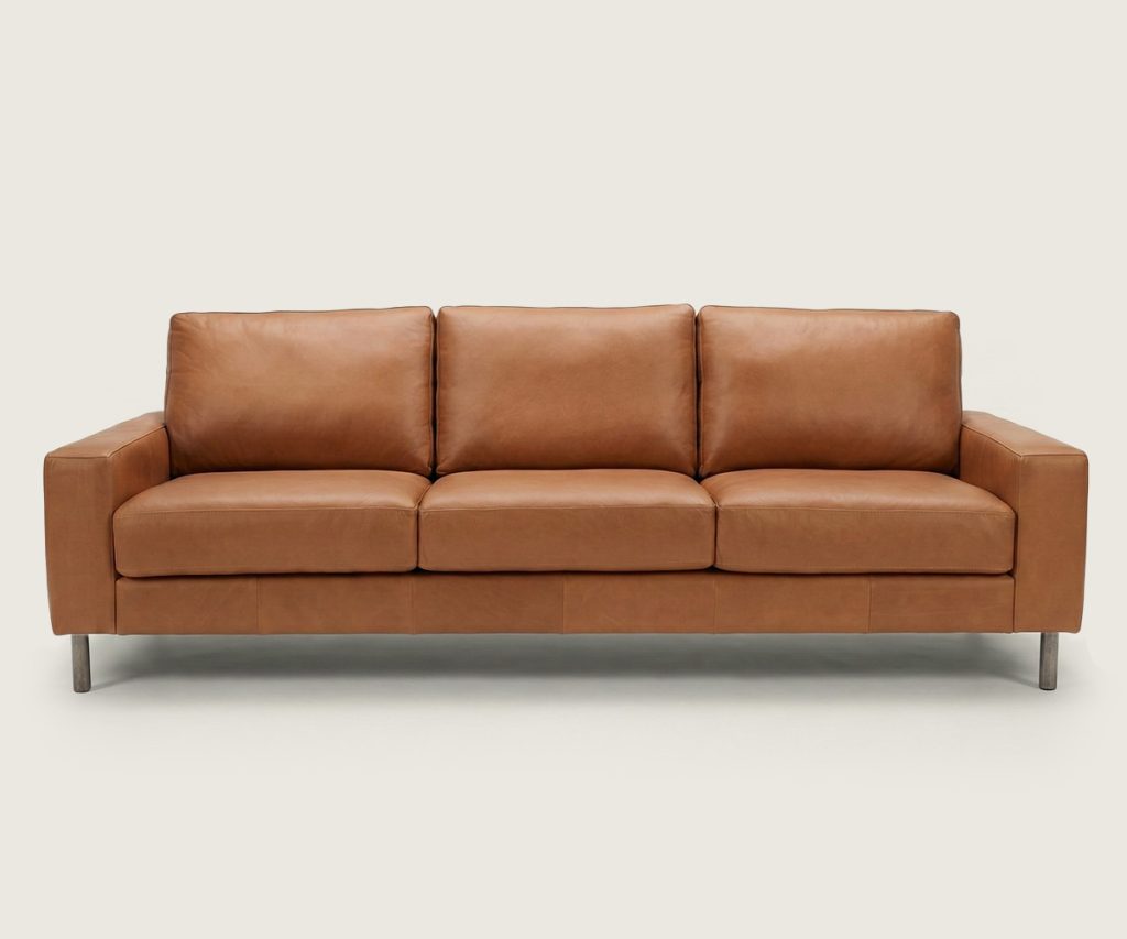 The secret to this sofa's appeal lies in its material: genuine leather.